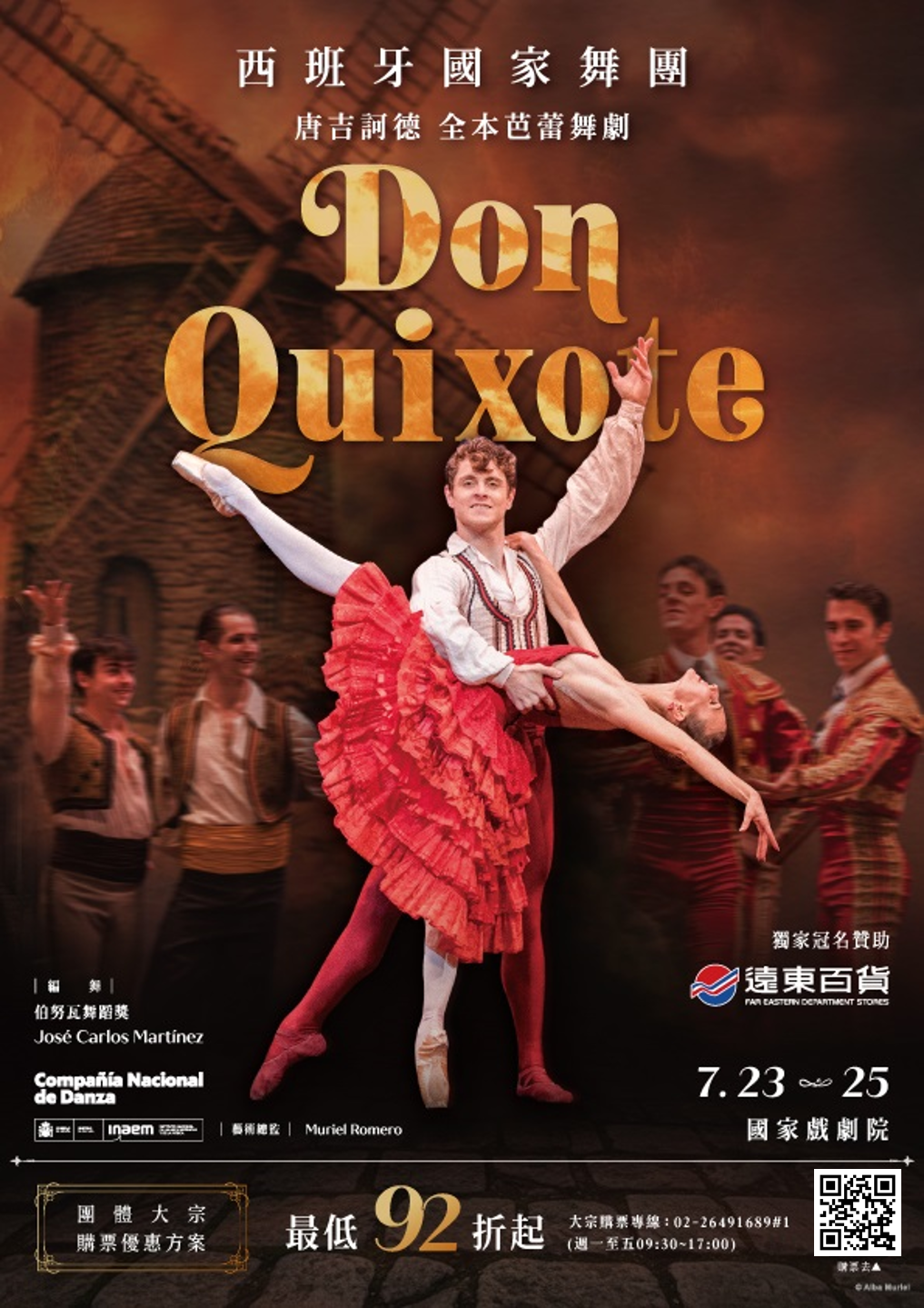 (十) 此次,由「遠百獨家呈獻西班牙國家舞團攜全本芭蕾舞劇《唐吉訶德》」來台,不僅是一場國際級芭蕾盛會,更是一場跨越文學、音樂與舞蹈的西班牙文化饗宴,帶領觀眾走進《唐吉訶德》內理想與愛情交織的奇幻世界。